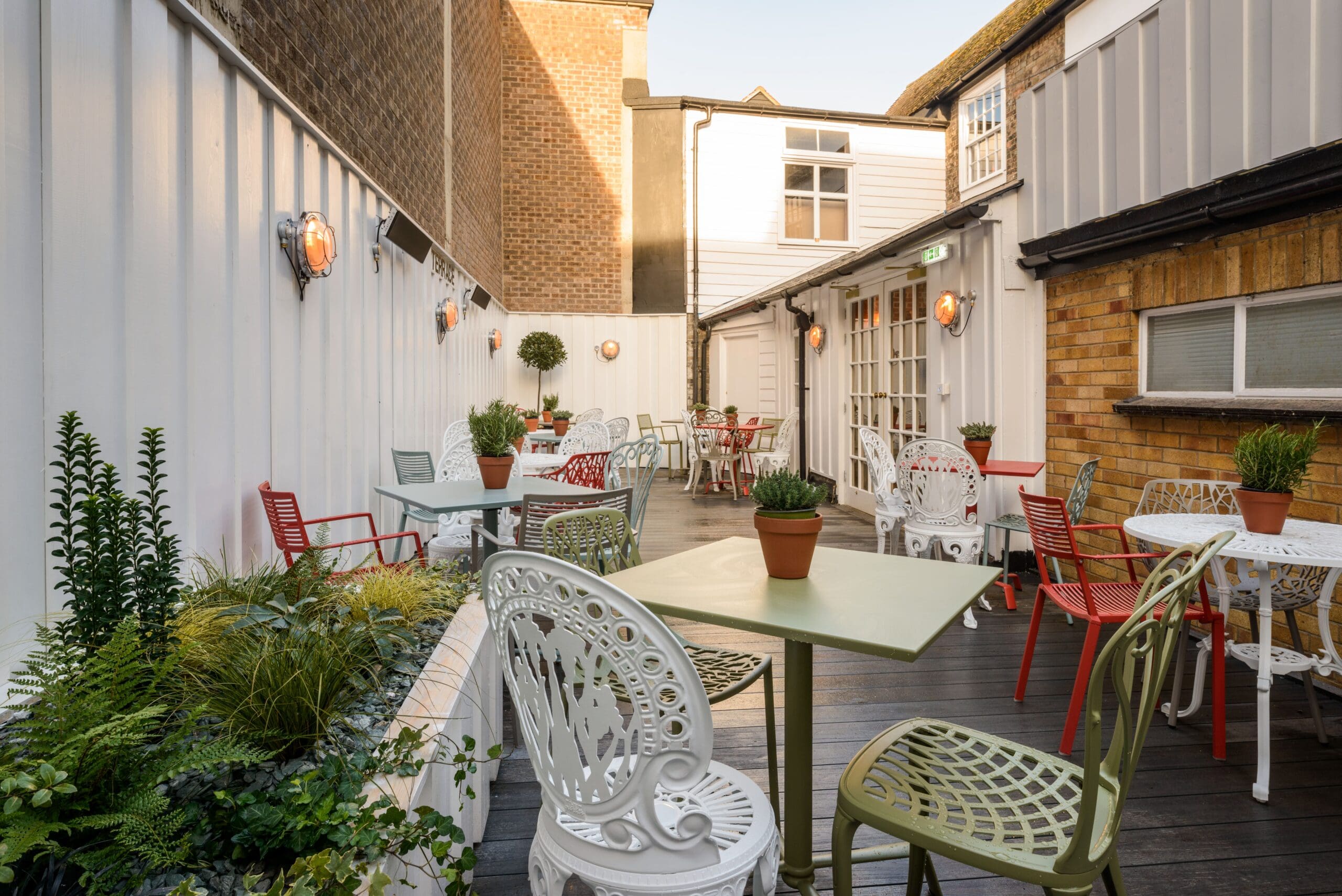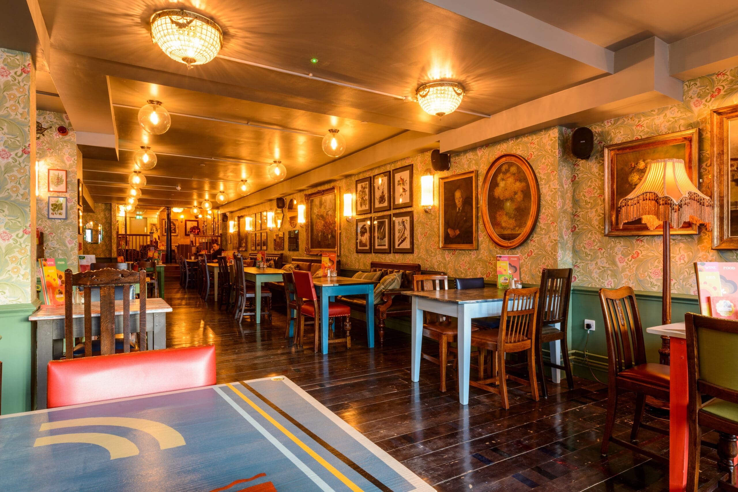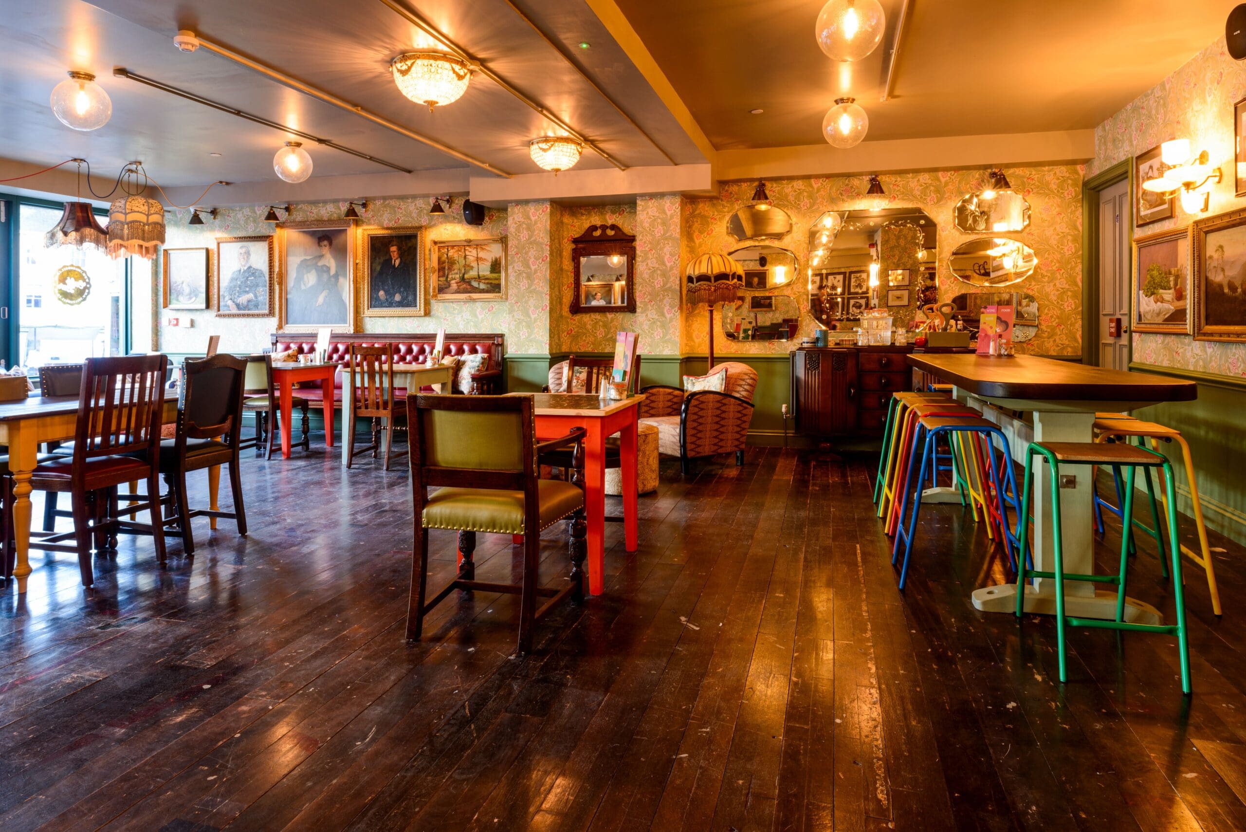 Prado Lounge is on a great spot in the centre of beautiful Sudbury, just opposite the market in front of St Peter’s. With big windows that open right up running along the front, we’re just perfect for watching the world go by on market – or most other – days. Inside, we serve a fantastic range of food and drinks (including full kids, gluten free and vegan menus) in our roomy, relaxed and rather handsome interior. Including of course our three café bar essentials; floral wallpaper, wall-hanging flying ducks and, er, a day bed.